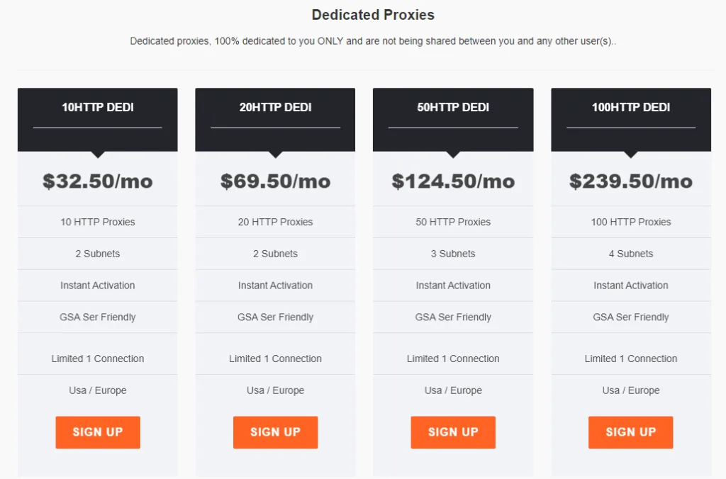 ومن الأمور التي نعرفها عن هذا المزود أنه يبيع بروكسيات HTTP شبه مخصصة وبروكسيات HTTP مخصصة ومتوافقة مع GSA SER، لذا يمكنك استخدامها في GSA scraping والنشر. ومع ذلك، لا تقدم الشركة أي سياسة استرداد. لكن دعنا نعرف المزيد من خلال مناقشة ميزات SolidProxies.