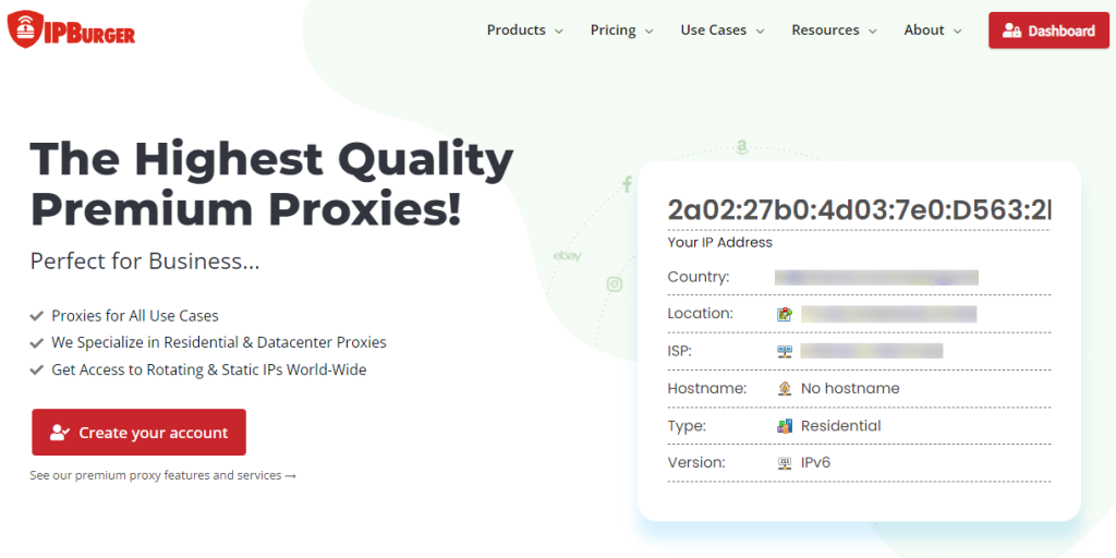 এটি মোড়ানো হচ্ছে আইপিবার্গার, একটি বৈচিত্র্যময় প্যাকেজ সহ একটি প্রতিশ্রুতিশীল প্রক্সি পরিষেবা প্রদানকারী৷আমরা ওয়েবসাইটটি দেখে বিশেষভাবে প্রভাবিত হয়েছি কারণ এটি একবার আপনি এটি খুললেই এটি আপনাকে আপনার আইপি এবং অবস্থানের বিশদ বিবরণ দেয়, যা ব্যবহারকারীদের প্রক্সিগুলি প্রয়োগ করতে বাধ্য করে৷