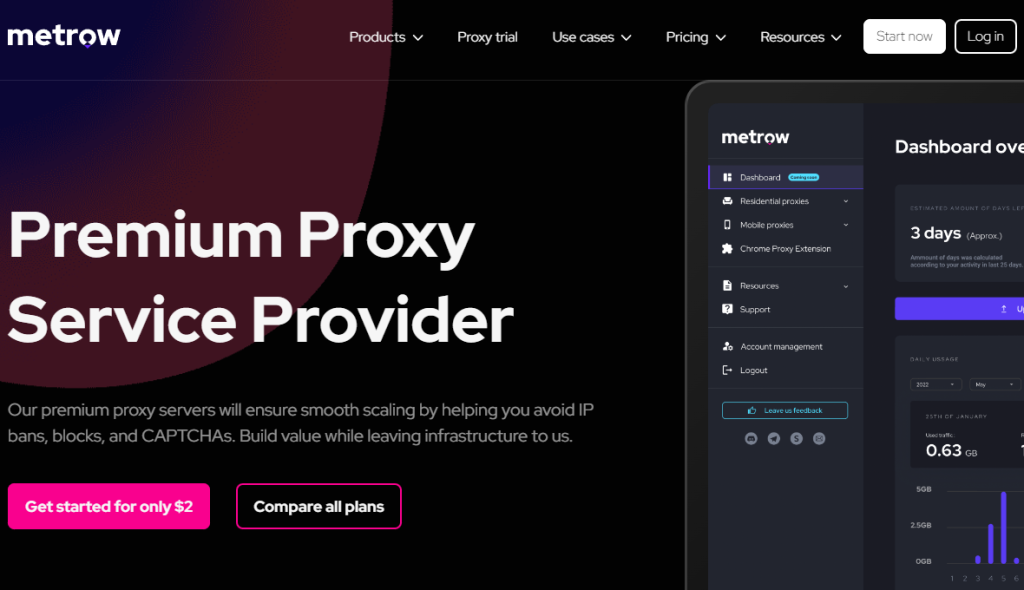 - ✓ মূল্য নির্ধারণ:আবাসিক প্রক্সিগুলি প্রতি GB মাসিক $10 থেকে শুরু হয়, যেখানে মোবাইল প্রক্সি সার্ভারগুলি প্রতি GB মাসিক $35 থেকে শুরু হয়। উভয়ই $2 24-ঘন্টা প্রদত্ত ট্রায়ালের সাথে আসে।