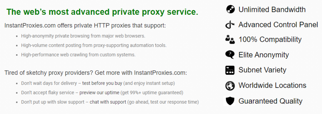 Forse la fama e la popolarità possono essere attribuite ai prezzi convenienti che rendono InstantProxies disponibile all'utente medio, il che è raramente il caso con le aziende di proxy premium. Nonostante siano proxy per i data center, hanno un'ampia gamma di casi d'uso.