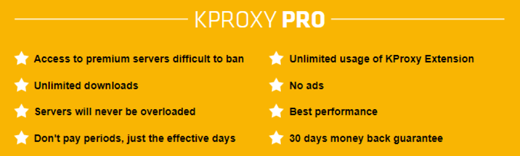 KProxy Pro ব্যবহারকারীরা enjoy unlimited downloads এবং unlimited usage এর the extension.