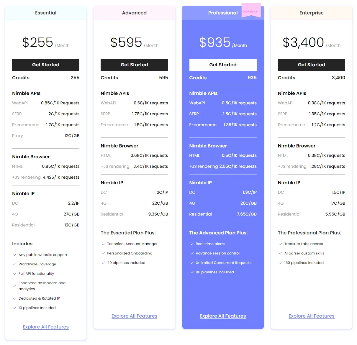 হিসেবে আপনি already know, এই কোম্পানি targets businesses এবং heavy প্রক্সি ব্যবহারকারীরা, so the উচ্চ starting দাম shouldn’t surprise আপনি. Nimbleway রয়েছে four মাসিক এবং yearly প্ল্যান উপলভ্য, each including the three products থেকে the কোম্পানি – the API, the browser, এবং the প্রক্সি.