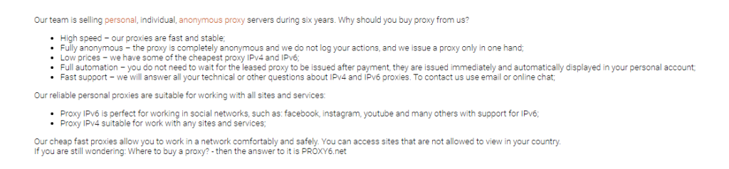 হিসেবে mentioned earlier, Proxy6 does very little তে show the kind এর সার্ভিস এটি অফার করে ব্যবহারকারীরা. এটি does not list the প্রক্সি বৈশিষ্ট্য হিসেবে other প্রক্সি প্রোভাইডাররা do. এই আমরা found তে হতে a massive red flag.