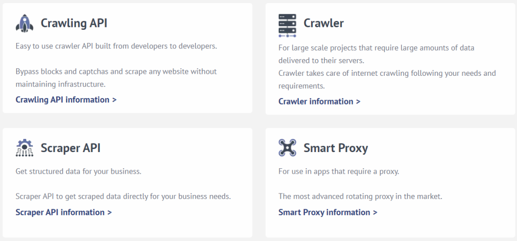 এটি হল worth noting that ProxyCrawl হল not famous জন্য এর প্রক্সি সার্ভিসগুলো হিসেবে অনেক হিসেবে এটি হল known জন্য এর web crawling সার্ভিসগুলো. এই কোম্পানি’s vast range এর products রয়েছে made এটি the go-to প্রোভাইডার জন্য some big names এ the ইন্ডাস্ট্রি, including some Fortune 500 companies.