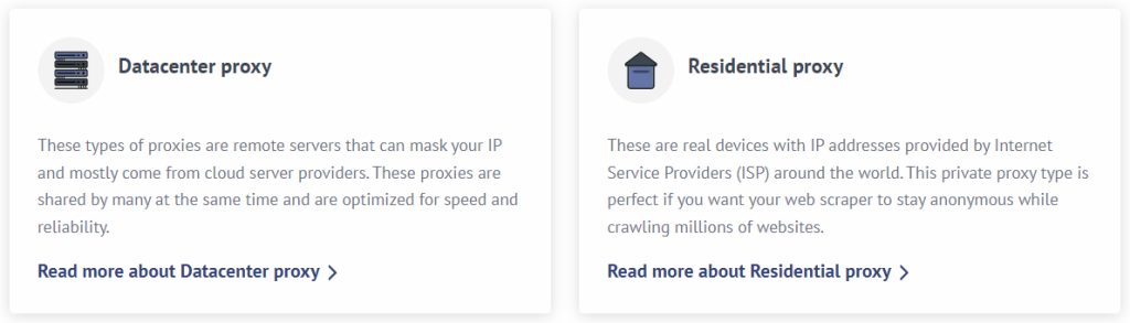 ProxyCrawl অফার করে something different থেকে other প্রোভাইডাররা. Where সবচেয়ে প্রোভাইডাররা অফার করে different প্রক্সি packages: রেসিডেনশিয়াল এবং ডেটাসেন্টার প্রক্সি এ different tiers, ProxyCrawl রয়েছে mixed এগুলো প্রক্সি এ one package. এই way, the গ্রাহক gets the absolute সেরা এর both worlds.