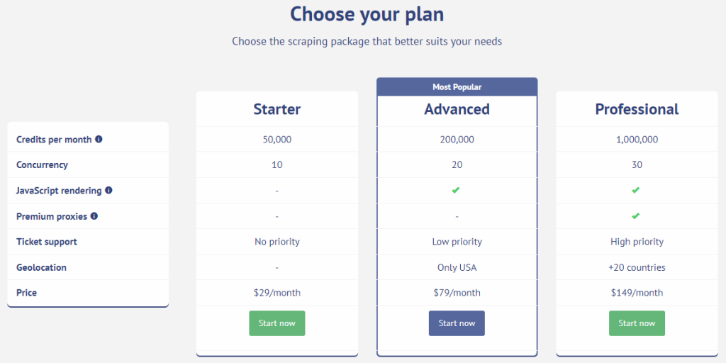Better still, আপনি পারে opt তে upgrade তে the ‘Advanced’ প্ল্যান, which the কোম্পানি claims তে হতে the সবচেয়ে জনপ্রিয়. Here আপনি পান 40 threads, one million credits, JavaScript rendering, এবং কম than one million unique প্রক্সি. আপনি also পান 10,000 রোটেটিং IPs এবং custom geolocation এ the US এ $289 a month.