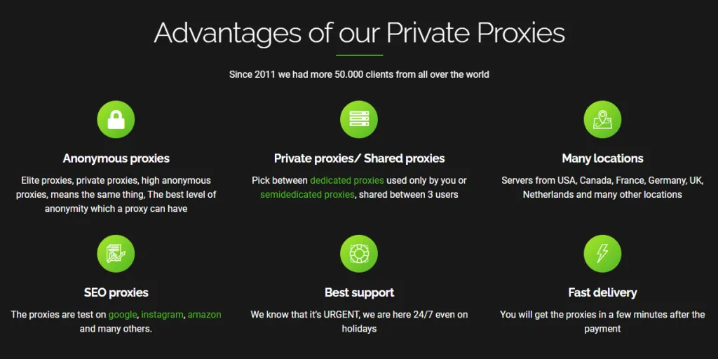 BuyProxies ist für die Bereitstellung qualitativ hochwertiger privater Proxys für Kunden weltweit bekannt. Mit überdurchschnittlichen Geschwindigkeiten und einem exzellenten Kundensupport-Team hat dieses Unternehmen seit seiner Gründung einen stetigen Strom von Kunden aufrechterhalten.
