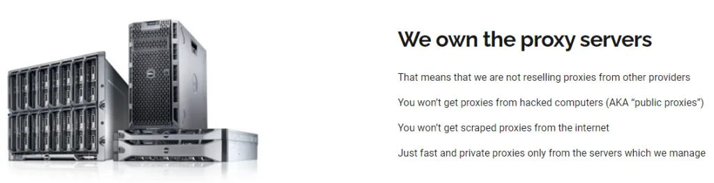 Eines der wichtigsten Merkmale von BuyProxies ist, dass es die gesamte Ausrüstung vollständig besitzt, die für den Dienst seiner Proxys verwendet wird. Dies bedeutet, dass das Unternehmen vollständige Kontrolle über sein Netzwerk hat, war bei Peer-zu-Peer-beschafften IPs selten der Fall ist. Hier wird sich das Unternehmensnetzwerk stark auf die Leistung der Netzwerke der Peers verlassen, war kaum effizient ist.