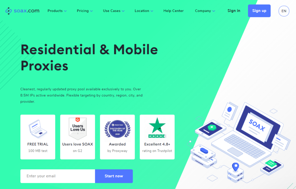 SOAX es otro nombre conocihacer en el munhacer de los proxy, que ofrece proxies residenciales y móviles, así como proxies para un centros de datos próximamente. En este momento, tiene más de 8,5 millones de direcciones IP que cubren más de 185 ubicaciones en tohacer el mundo.