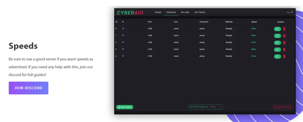Zoom Proxies es un proveedor de proxy datacenter que presume de tener los proxies más rápidos para copping de sneakers del mercado. Sus proxies funcionan en sitios Shopify, permitiendo que los sneakerheads de todo el mundo hagan compras instantáneas.