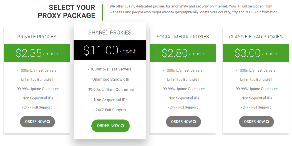 Comencemos esta sección diciendo que Proxy-N-VPN es un proveedor de proxies muy asequible. Una de las mejores cosas sobre él es que te permite comprar solo un proxy privado, a diferencia de la mayoría de proveedores cuyos paquetes más pequeños constan de varios proxies.