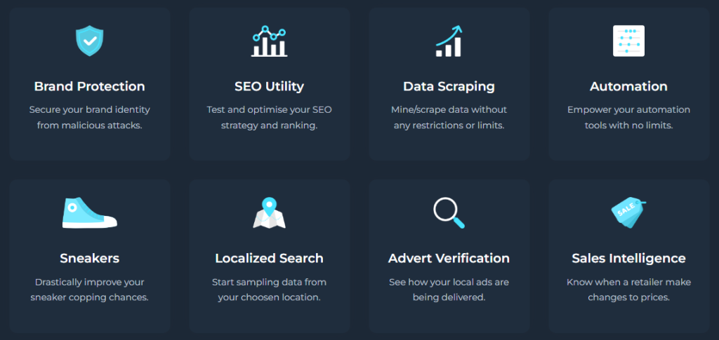 Sin embargo, los proxies móviles solo se soportan en el Reino Unido, mientras que los proxies de datacenter están disponibles en EE.UU., Reino Unido y algunas otras ubicaciones europeas. Lo mismo ocurre con los proxies de ISP. Por lo tanto, mientras que la diversidad de ubicación es buena, no se distribuye bien entre todos los paquetes de proxy.