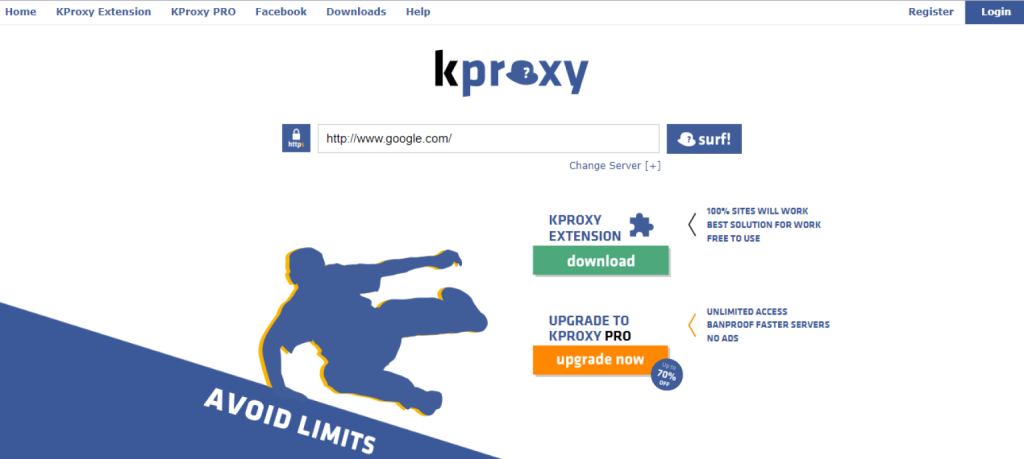 Ano ang silbi ng listahan ng proxy ng Clash of Clans nang walang libreng serbisyo ng proxy? Nag-aalok ang Kproxy ng walang limitasyong libreng bersyon at nagla-lock ng mas advanced na feature sa likod ng paywall. Gayunpaman, mahusay nitong nilalampasan ang mga geo-block, gumagana nang maayos sa mga server ng paglalaro ng CoC at ilang pangunahing streaming site.