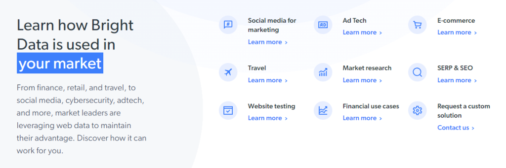 Bright Data also takes custom orders if you have special requirements; they also provide a free quote at samples on their website.