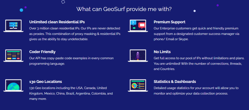 May datacenter proxies which are a bit harder to find on its site ang Speaking of proxies, GeoSurf focuses on providing residential proxies, but it also. What sets it apart mula sa other mga proxy provider are the legally binding agreements it signs na may all of its customers, guaranteeing it won’t share their data na may third parties.