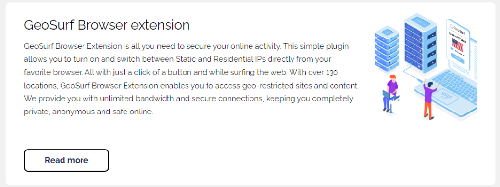 GeoSurf site is user-friendly, so even proxy beginners can use it nang walang difficulties. May a nice at clean user interface that’s well organized at structured ang It. Dahil sa its browser extension, the integration of proxies is even easier para sa mga user of Chrome, Firefox, at other Chromium-based browsers.