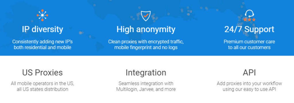 ProxyLTEは米国のIPアドレスに焦点を当てた人気のあるモバイルプロキシサービスです。モバイルプロキシプロバイダーとして自らを宣伝しているにもかかわらず、そのプロキシプールにはレジデンシャルIPも含まれています。同社は世界中から4,000人以上の満足した顧客を持つと言及しています。