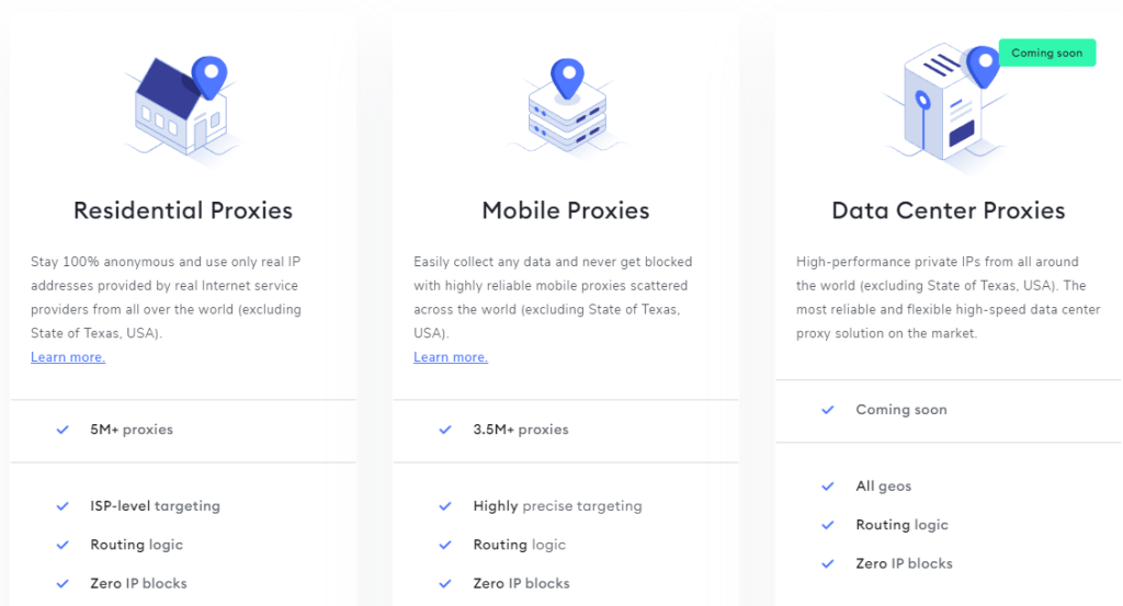 Tulad ng sinabi na, ang catalog mula sa SOAX ay medyo impressive. Ang nagbibigayr ay nag-aalok ng ilang karamihan popular sa sought-pagkatapos proxies: residential, datacenter, sa mobile. What's higit pa, nakakakuha ka ng pareho static sa rotating IPs sa servers na ito.