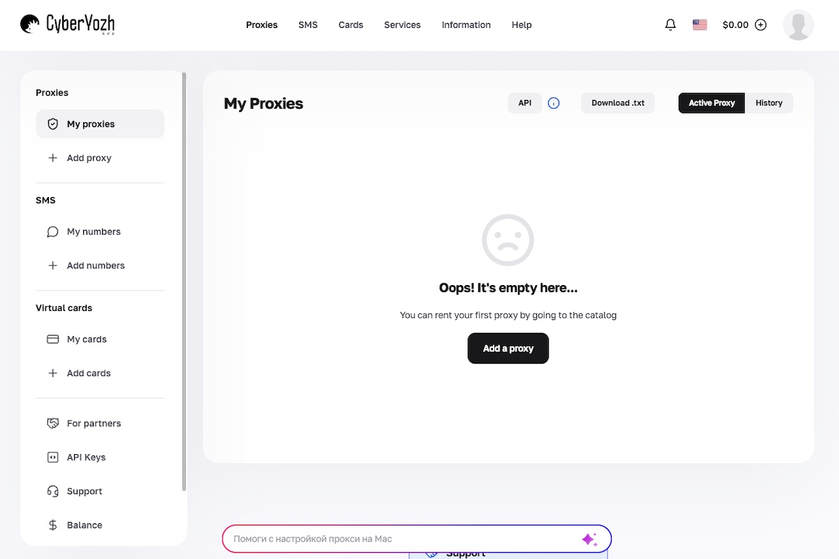 अधिकांश प्रॉक्सी प्रदाता आवासीय, डेटासेंटर या मोबाइल हों, चाहे भी प्रॉक्सी पहुंच बेचने पर एक्सक्लूसिव रूप से ध्यान केंद्रित करते हैं। CyberYozh आगे जाता है SMS सक्रियण और धोखाधड़ी-जोखिम मूल्यांकन उपकरणों को एक ही प्लेटफॉर्म में एकीकृत करके। इसका मतलब है कि उपयोगकर्ताओं को SMS प्रदाताओं या जोखिम-मूल्यांकन सेवाओं के साथ अलग खातों को बनाए रखने की आवश्यकता नहीं है।