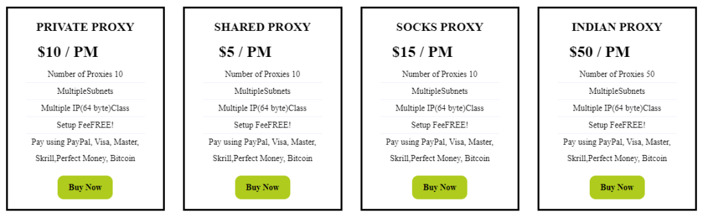 価格設定はこのプロバイダーの最も重要な利点であり、信じられないほど手頃です。Proxiesのためにrentはすべてのサブスクリプションプランに対して、プロキシあたりの価格設定モデルを使用しており、必要なプロキシの数に応じて支払います。