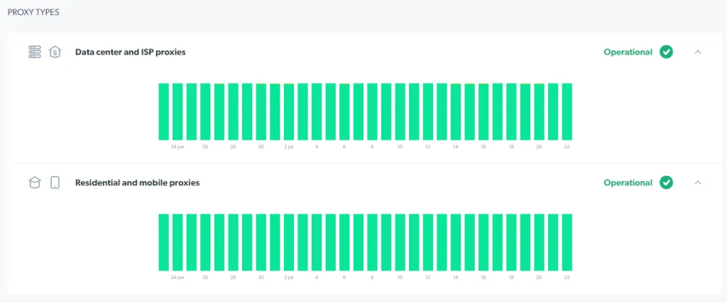 Wat betreft uptime, hebben we geen betrouwbaarheidsproblemen gevonden tijdens ons onderzoek, dus downtime was theoretisch nul voor ons. Deze cijfers zijn indrukwekkend, en we feliciteren Bright Data met het opbouwen van zo'n krachtig netwerk.