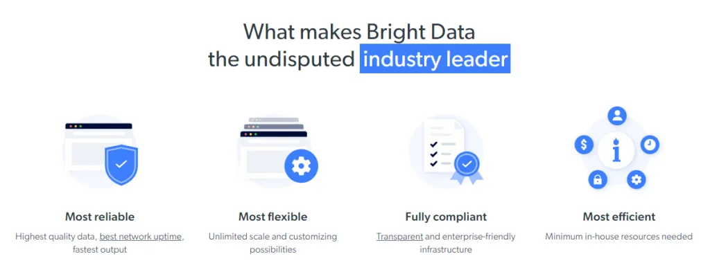Afhankelijk van de vereisten en het gebruik van uw bedrijf, kunnen de functies van een proxyprovider kritiek zijn. Bright Data biedt een indrukwekkende reeks attributen, die hen van anderen onderscheidt.