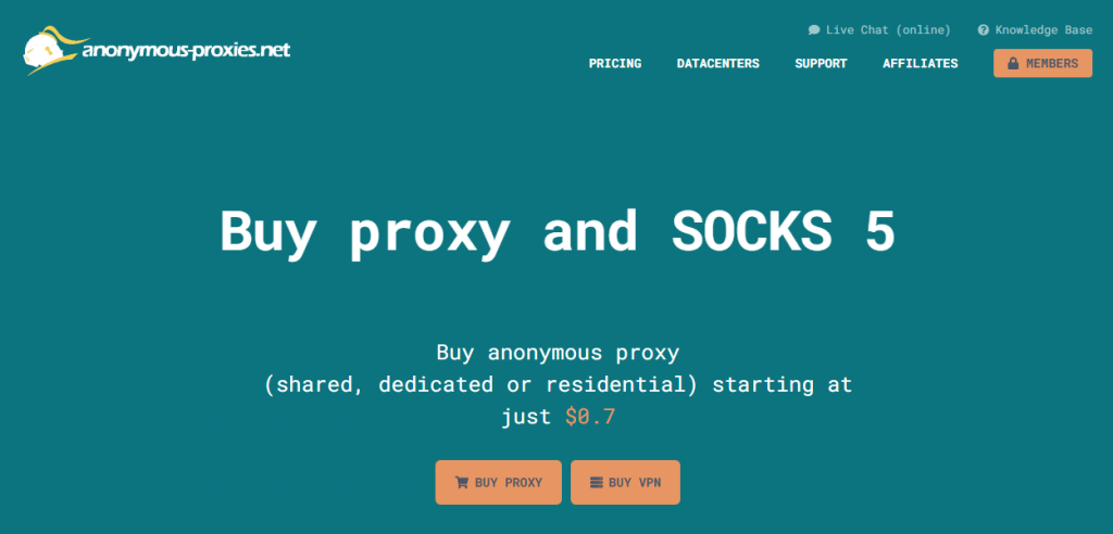 anonimowy/a-Proxies to rumuńska firma, która sprzedaje serwery proxy i sieci VPN. Oferuje kilka rodzajów proxy, w tym prywatne, SOCKS5 i wspólne serwery proxy. Działając w branży przez prawie dekadę, firma zdobyła reputację jednego z najpopularniejszych i najtańszych dostawców proxy.