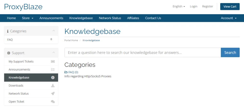 Wysłaliśmy im wiadomość e-mail, aby dowiedzieć się jak najwięcej informacji i otrzymaliśmy odpowiedź w ciągu 24 godzin. Tak że jeśli potrzebujesz szybkiej pomocy, najprawdopodobniej nie otrzymasz jej z proxy Blaze. Chociaż mają sekcję FAQ i bazę wiedzy, wydaje się, że jest pusta, a ostatnie ogłoszenie zespołu zostało wydane w 2014 roku.