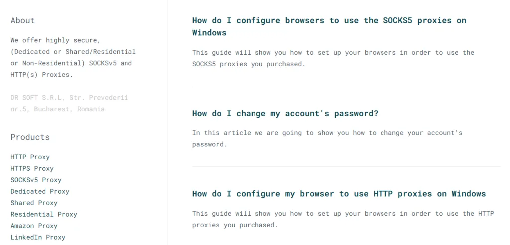 This brand sells multiple types of proxies, including residential proxies, dedicated or private proxies, shared proxies, LinkedIn proxies, Amazon proxies, as well as HTTP, HTTPS, and SOCKSv5 proxies. This is an excellent variety of proxies not easily found in many providers on the market.