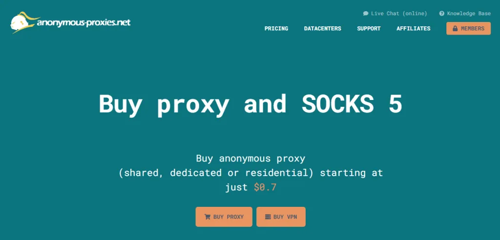Anonymous-Proxies is a Romanian company that sells proxy servers and VPNs. It offers several types of proxies, including private, SOCKS5, and shared proxies. With almost a decade in the business, the company has made a name for itself as one of the most popular and cheapest proxy providers out there.