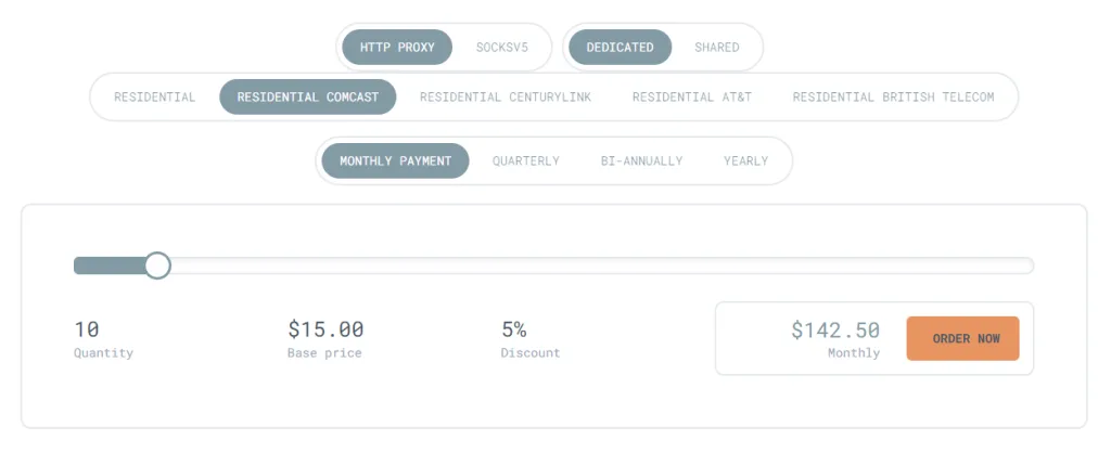 A 5% discount is automatically applied when making an order on Anonymous-Proxies, but the discount increases as you increase the number of proxies and the duration of the payment plan.