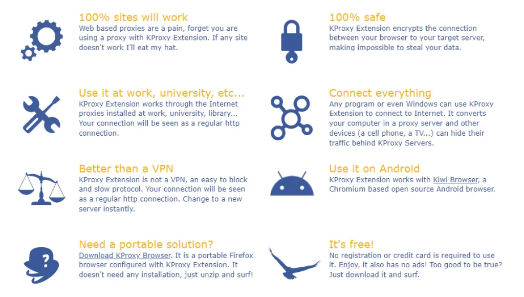 So although the browser is not an invention of the brand itself, this modification is still extremely useful to KProxy customers. In fact, it’s one of the things that sets KProxy apart from its competition. It’s free and easy to use as it doesn’t require installation.