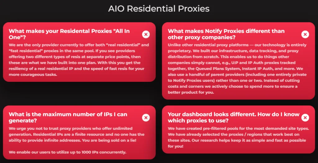 As mentioned earlier, Notify Proxies offers three proxies: residential, datacenter, and ISP. There are no mobile proxies here, meaning users looking for such will have to look for alternatives.