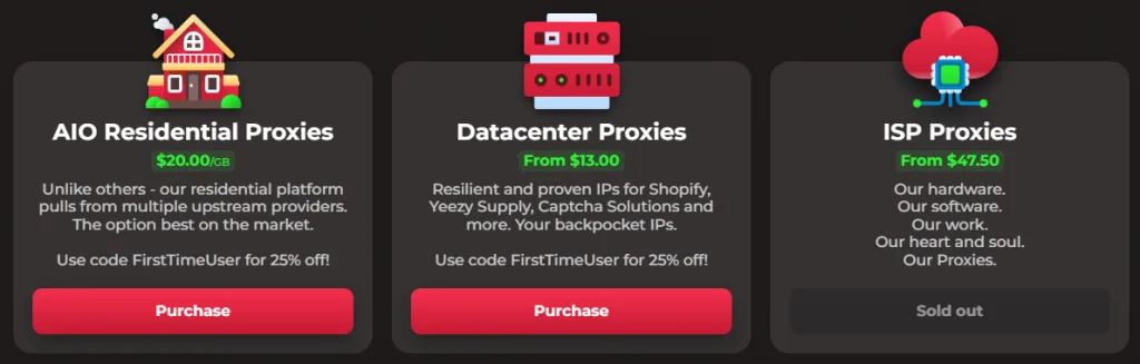 With this in mind, 1 GB of residential proxies starts at $20, an outrageously huge sum. The datacenter proxies are cheaper, starting at $13 per GB. Finally, the ISP proxies, sold out at the time of this writing, start at $47.50.