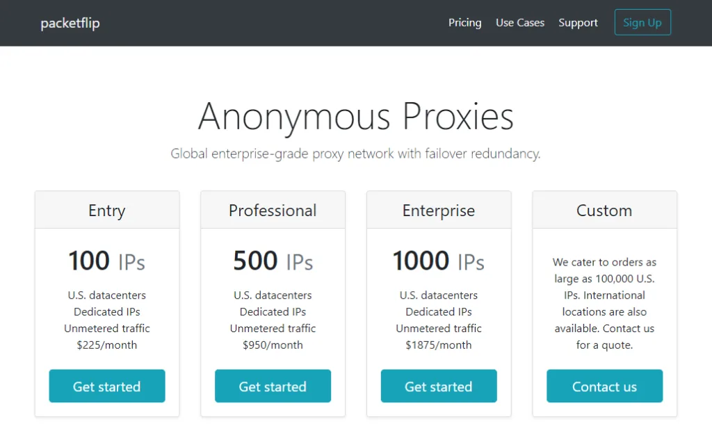 Packetflip may not be one of the most popular proxy providers out there, but it's certainly one of the oldest being formed in 2008. It provides dedicated proxies from the United States and international locations unknown to the site's visitors.