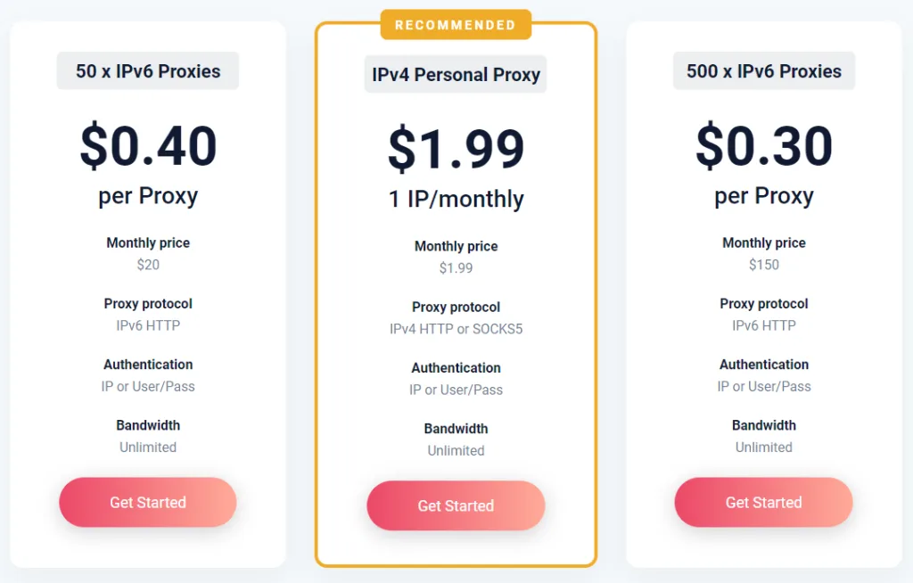 Unlike most providers, which offer IPv4 datacenter proxies only, Proxy-Cheap also provides IPv6 proxy addresses. It also supports both HTTP(S) and SOCKS5, as well as both IP authentication and username/password authentication methods.