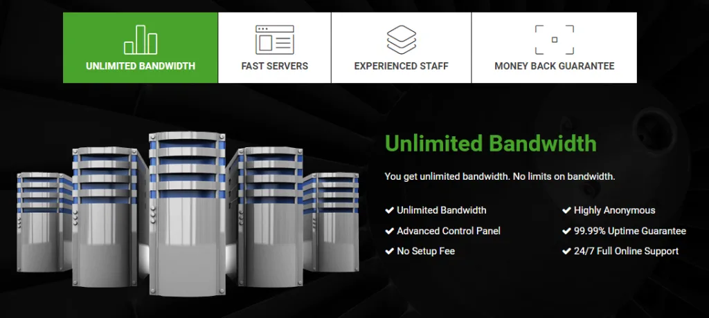 All proxies from this provider are highly anonymous and come with a 99.9% uptime guarantee. The company doesn’t require any setup fee and doesn’t restrict the bandwidth you use.