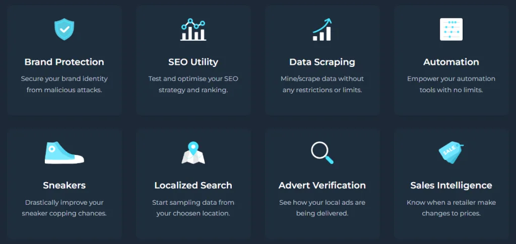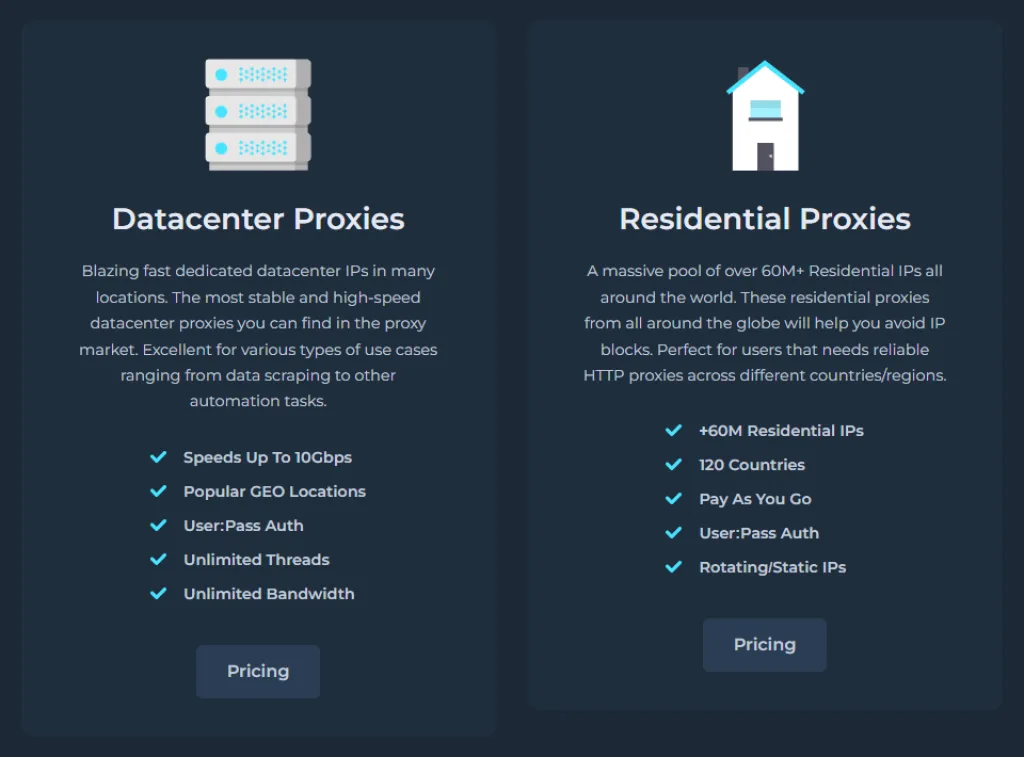 By now, you should have a rough idea of some of the proxies available from SpeedProxies. They are datacenter, residential, mobile, and ISP. These proxies have different features and pricing plans, which we'll go over a bit later.