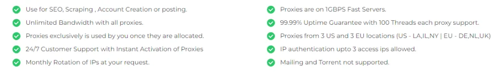 Currently, the company offers shared proxies only from Los Angeles, United States. Its dedicated private proxies come from four US locations – Los Angeles, New York, Texas, and Illinois, three locations in Europe – London, the UK, Germany, and Amsterdam, Netherlands, and from APAC, Australia.