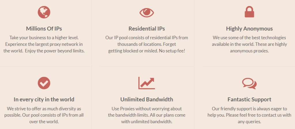 When it comes to features, The Proxy Store is quite shady in providing details about the features the proxies offer. For one thing, the website does not mention the exact locations of its proxy servers. It only states they’re available in “over 100 locations,” which is quite odd given that most other high-caliber companies in this space mention the individual locations.
