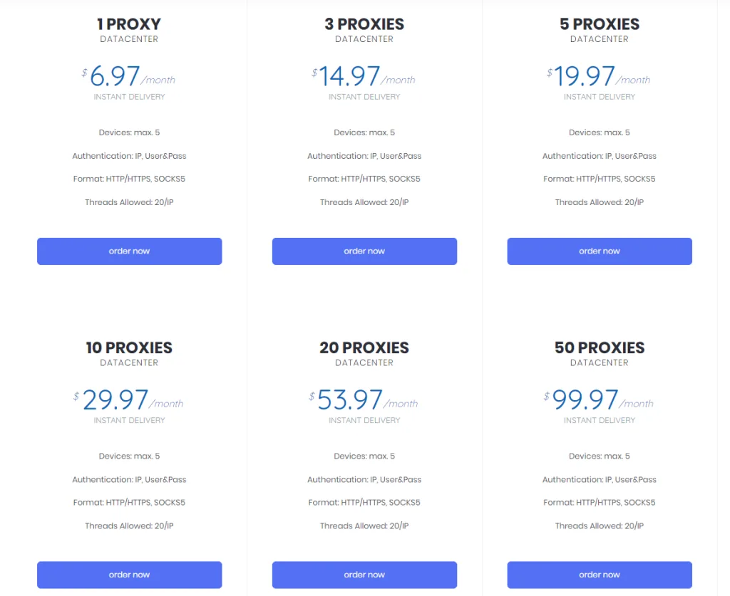 However, its proxies become quite affordable and even cheap if you buy them in bulk. For example, the biggest plan (200 datacenter proxies) costs $399.97, and the one with 150 proxies costs $299.97. This means you’d pay less than $2 for a proxy.