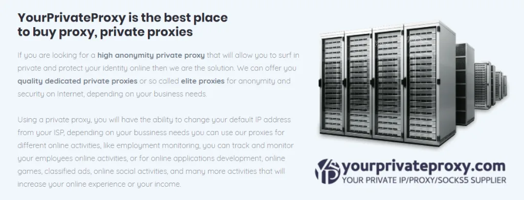 Founded in 2009, YourPrivateProxy is one of the oldest proxy providers out there. It started as a datacenter proxy supplier, but now it also offers residential proxies. Its proxies provide a high degree of anonymity, making them a good option for general tasks like anonymous browsing and more intense ones like using sneaker bots.