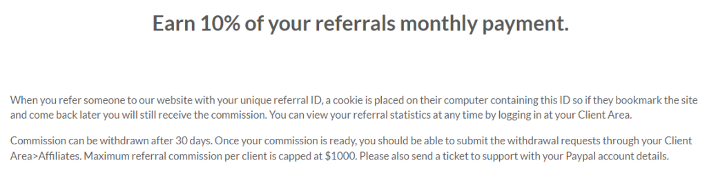 o Proxy Store oferece uma comissão de 10% em referências. Quando alguém visita o site através fazer seu link, obtém um cookie que fica ativo por 30 dias. Mesmo que voltem mais tarde e façam um pedido, você receberá a comissão. É importante notar que o site limita os ganhos de referência a $1.000 por usuário.