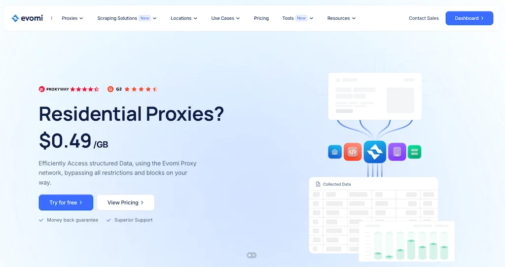 Evomi diverse proxy offering และ scraping tool ทำให้เหมาะสำหรับ wide range ของ application