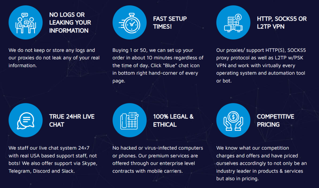 บริษัทยังครอบครองอุปกรณ์ทั้งหมด และพร็อกซี่เป็นพระ และไม่ได้ใช้โดยแปลเป็นประสิทธิภาพที่ดีขึ้น คุณควรคาดหวังอัตราความสำเร็จที่ยอดเยี่ยมเมื่อใช้พร็อกซี่เหล่านี้เนื่องจากปัจจัยเหล่านี้