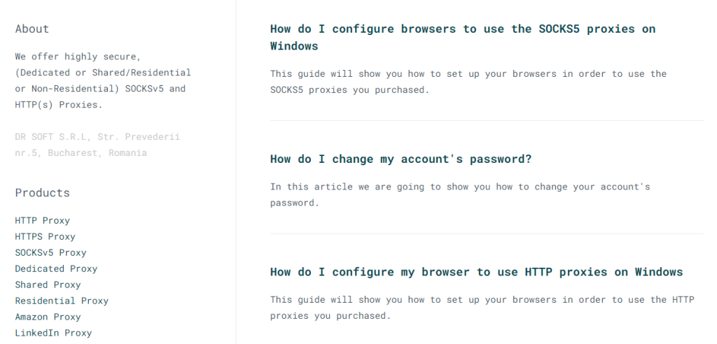 Bu marka, konut proxy'leri, özel veya özel proxy'ler, paylaşılan proxy'ler, LinkedIn proxy'leri, Amazon proxy'leri ve ayrıca HTTP, HTTPS ve SOCKSv5 proxy'leri dahil olmak üzere birden fazla türde proxy satmaktadır. Bu, piyasadaki birçok sağlayıcıda kolayca bulunamayan mükemmel bir proxy çeşitliliğidir.