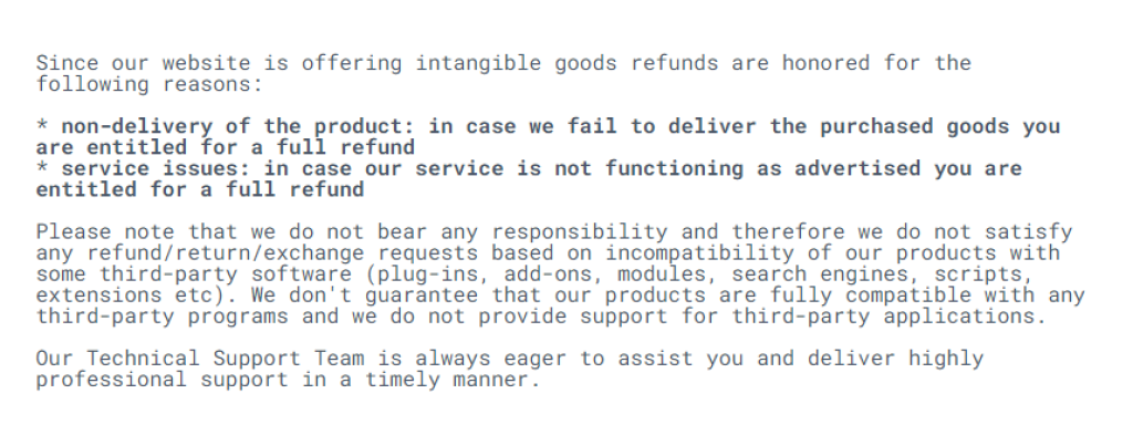 Şirket, yalnızca satın alınan proxy'leri teslim edemez veya hizmet reklamda olduğu gibi çalışmıyorsa tam geri ödeme sağlar. Ancak, bazı Anonymous-Proxies müşterileri gerektiğinde geri ödeme almadıkları hakkında şikayet etmektedirler, bu da aklınızda tutmanız geren bir şeydir.