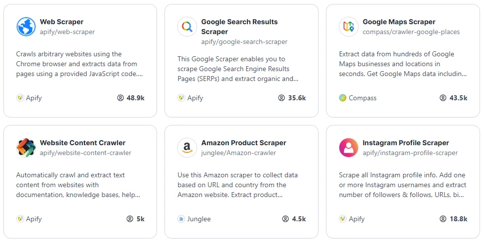 Apify yüzde 100 meşrudur; dünya çapında geliştiriciler, veri bilimciler ve işletmelere yararlı araçlar sunmaktadır. Dünya çapında 15.000'den fazla işletme tarafından güvenilmekte olup otomasyonu ve web scraping ihtiyaçlarını kolaylaştırmalarına yardımcı olmaktadırlar.