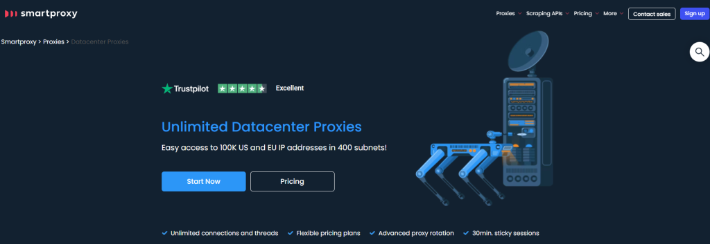Smartproxy درمیانے درجے کے پراکسی صارفین کے لیے بہترین انتخاب ہے کیونکہ یہ قابل اعتماد، رفتار اور قیمت کے درمیان ایک میٹھا مقام پیش کرتا ہے۔ اس کا کیا مطلب ہے؟ آپ ڈیٹا سینٹر پراکسیز کو برائٹ ڈیٹا کی طرح لیکن بہت کم قیمت پر حاصل کر سکتے ہیں۔