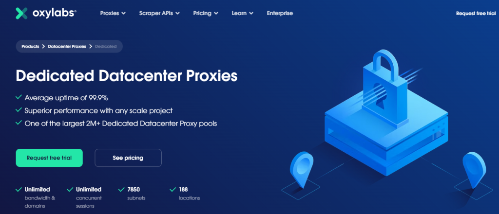 Oxylabs ایک پریمیم رہائشی پراکسی سروس فراہم کنندہ ہے جو چھوٹے اور بڑے کاروباروں کو نشانہ بناتا ہے۔ اس کے پاس مارکیٹ کا سب سے بڑا رہائشی پراکسی پول ہے، جو 100 ملین سے زیادہ IPs پر مشتمل ہے۔